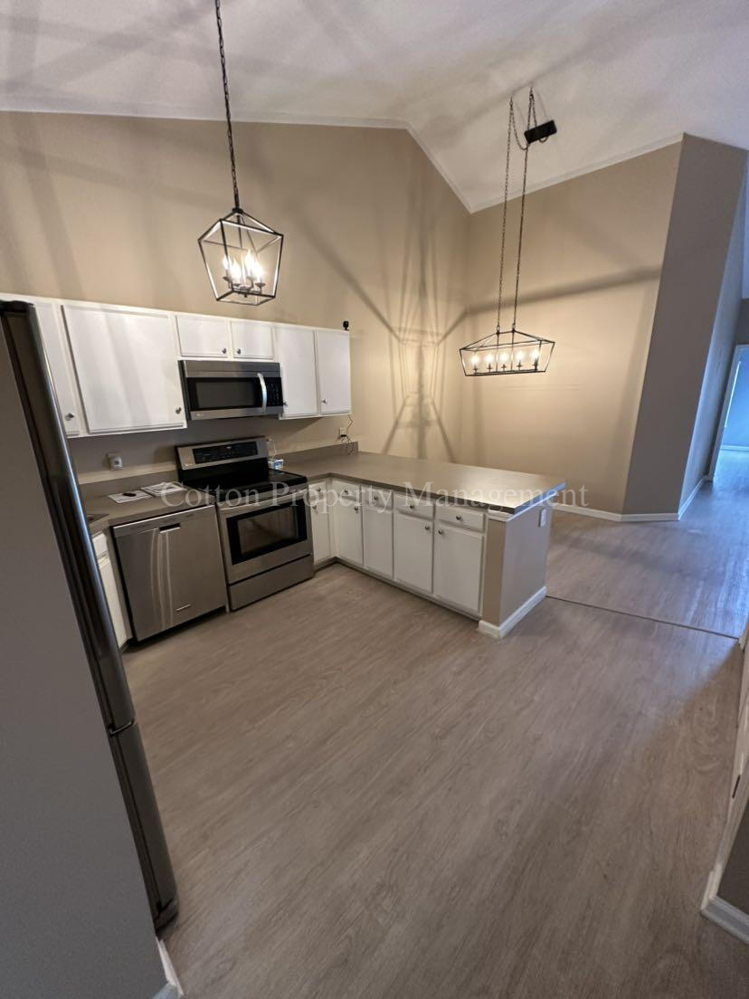 Appliances include a stainless steel refrigerator, washer, and dryer—all included for your convenience.